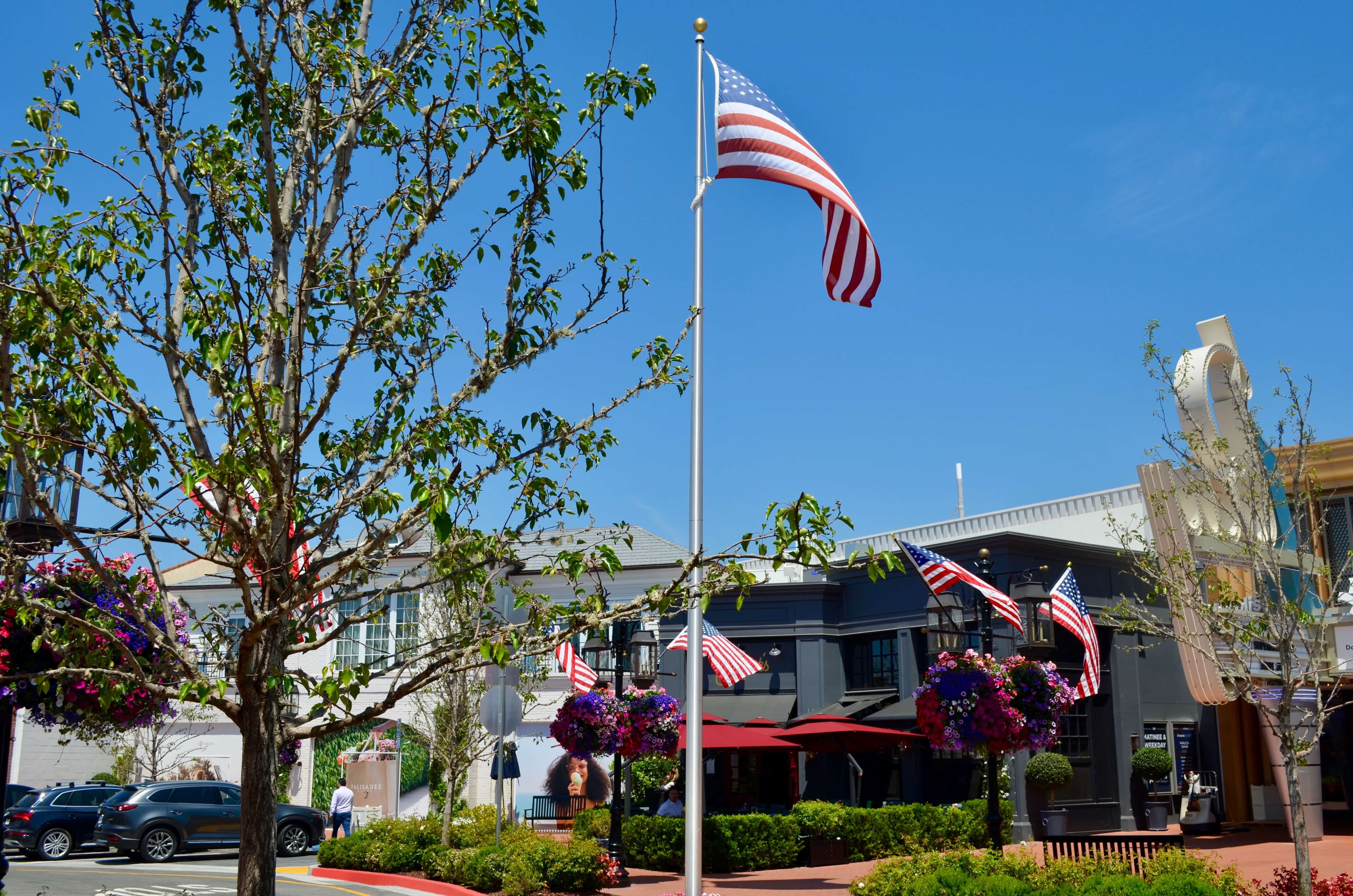 Sans le vouloir j’ai plutôt bien choisi ma semaine puisque c’était le 4th of July et les rues étaient décorées aux couleurs des States. Et qu’y-a-t’il de plus mignon qu’un mall américain ? Un mall américain décoré avec tout un tas de drapeaux !
