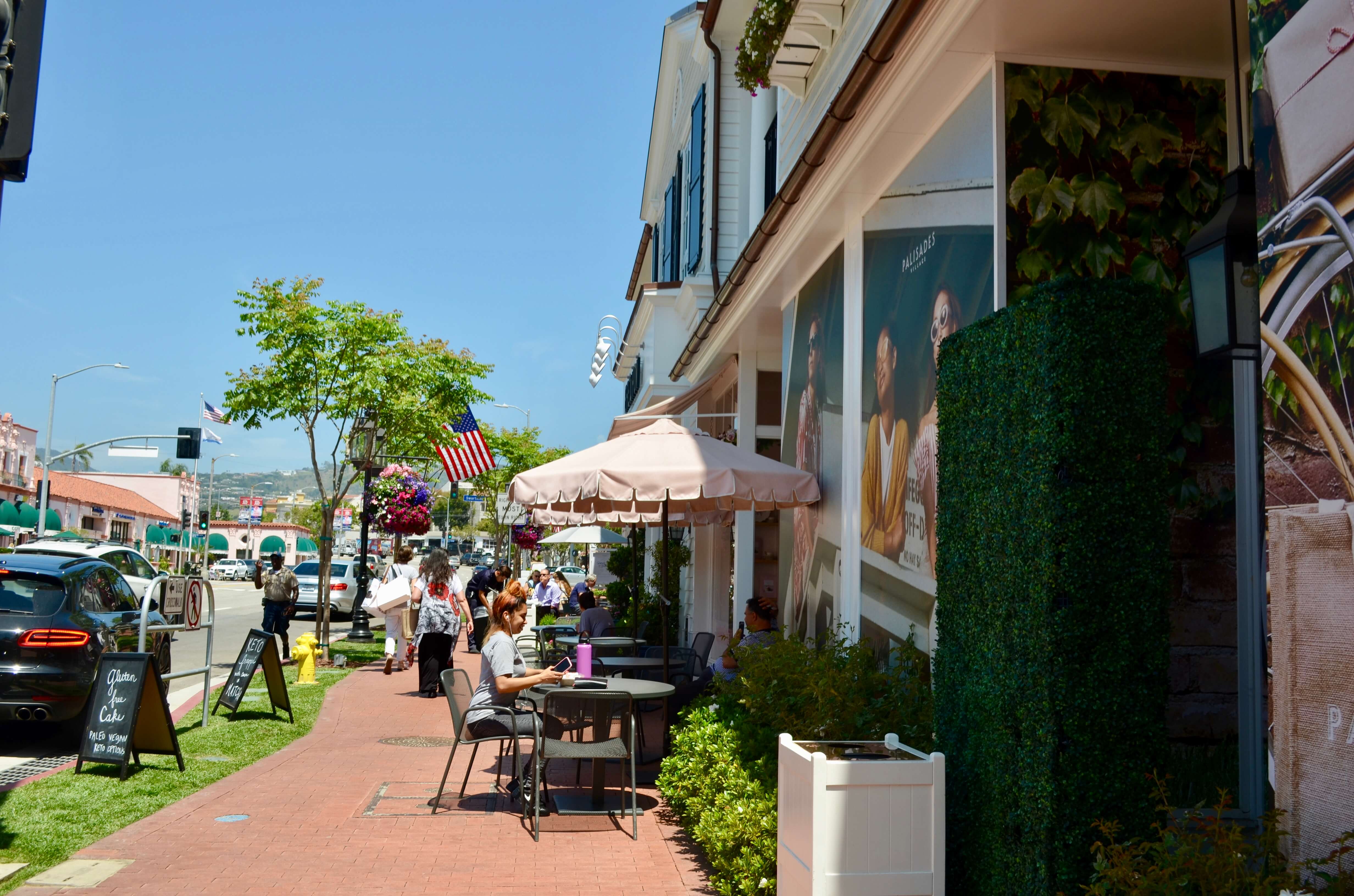 L’Amérique, ce paradis des malls ! Quand on pense « mall » on pense immense centre commercial couvert avec des centaines de boutiques et c’est tout à fait le cas, les Westfield sont les rois pour ça. Mais il y a aussi des petits malls en extérieur, super mignons et où il est très agréable de se balader. C’est le cas de The Grove dont je vous ai déjà parlé ici, mais aussi de Americana at Brand à Glendale (dont je ne vous ai pas encore parlé mais je n’y manquerai pas le jour où je me déciderai à y aller!). Ces deux malls font partie du groupe Caruso, et depuis peu un troisième s’est ajouté à la liste: Palisades Village, dans le quartier de Pacific Palisades aka le quartier des riches.